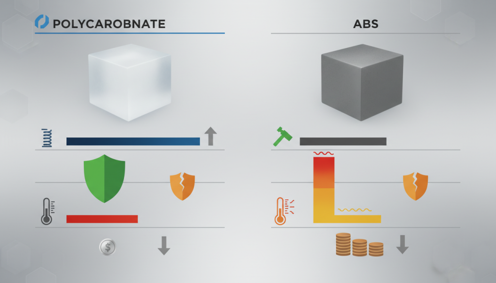Polycarbonate offers extreme impact resistance and optical clarity, while ABS provides a cost-effective, rigid solution for opaque structural housings. You often face the challenge of selecting a material that balances performance with production budgets. Using the wrong plastic can lead to premature part failure or unnecessary cost overruns in your supply chain. Deciding between Polycarbonate vs. ABS ensures your engineering team meets mechanical specifications without sacrificing your bottom line.