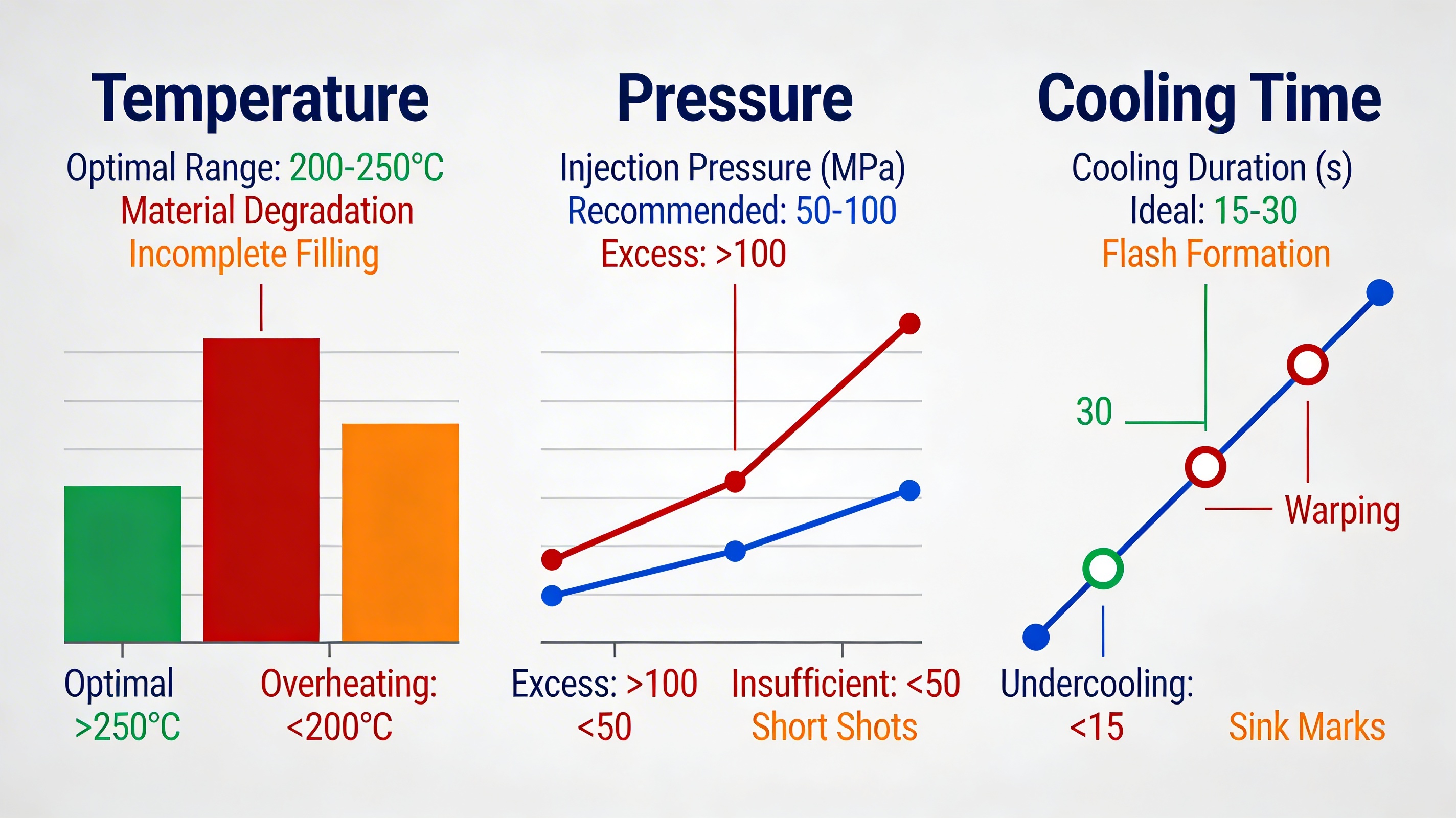 | Pressure | Optimize | Ensures uniform cavity filling |