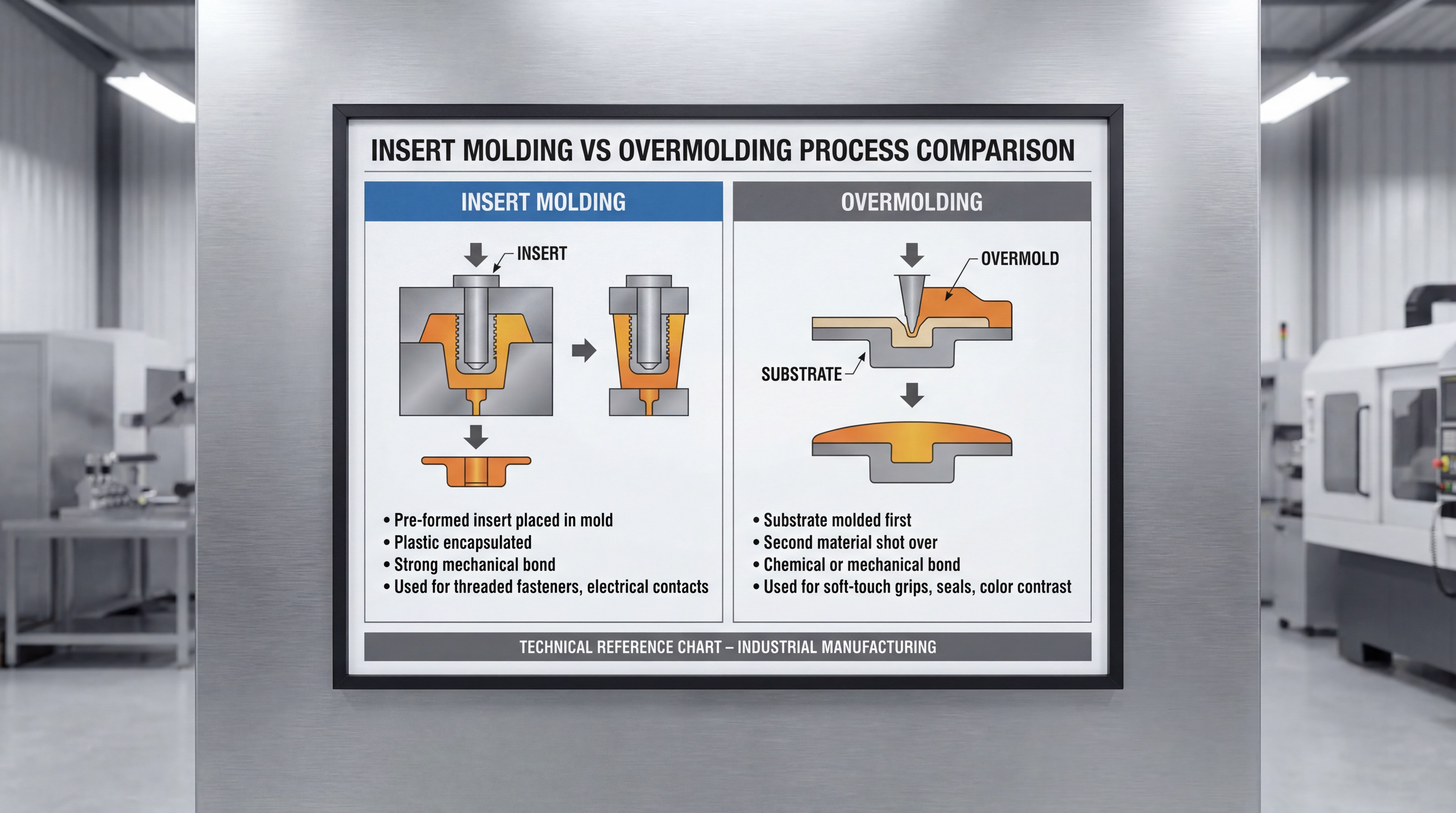 Key Takeaway: Don’t let the lower cost of insert molding fool you; if you have a high-volume part, the extra investment in a two-shot overmolding tool will pay for itself in reduced labor and higher quality.