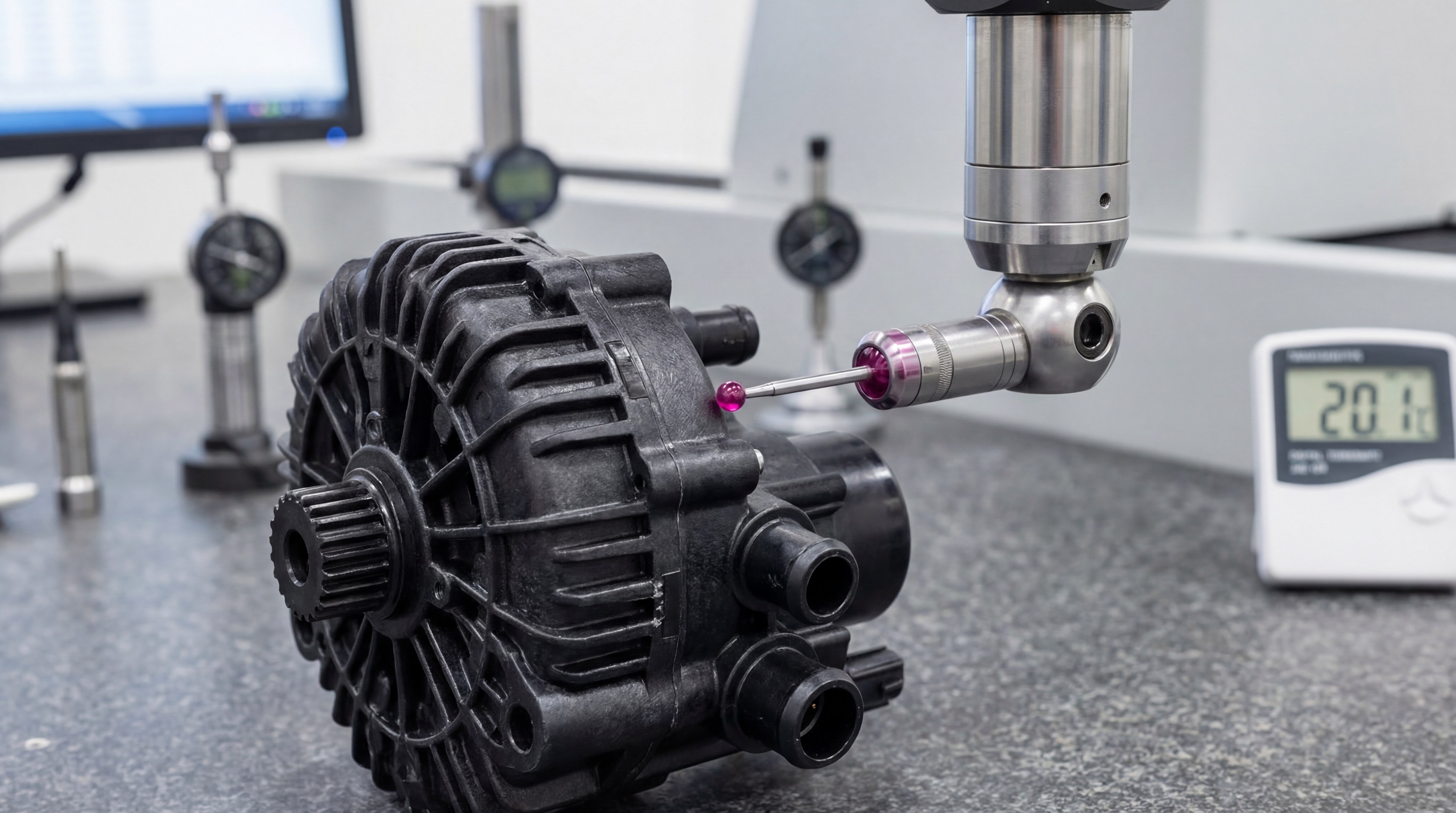Using a ruby-tipped probe, the CMM measures complex geometries that are impossible to verify with manual calipers. This data ensures that critical fitment points, such as snap-fits or screw bosses, will function perfectly during final assembly.