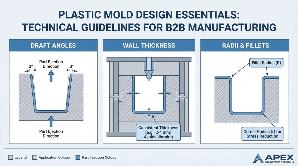 Key TakeawayAdding draft is the most critical step to prevent part deformation and surface scuffing during the final stages of the molding cycle.