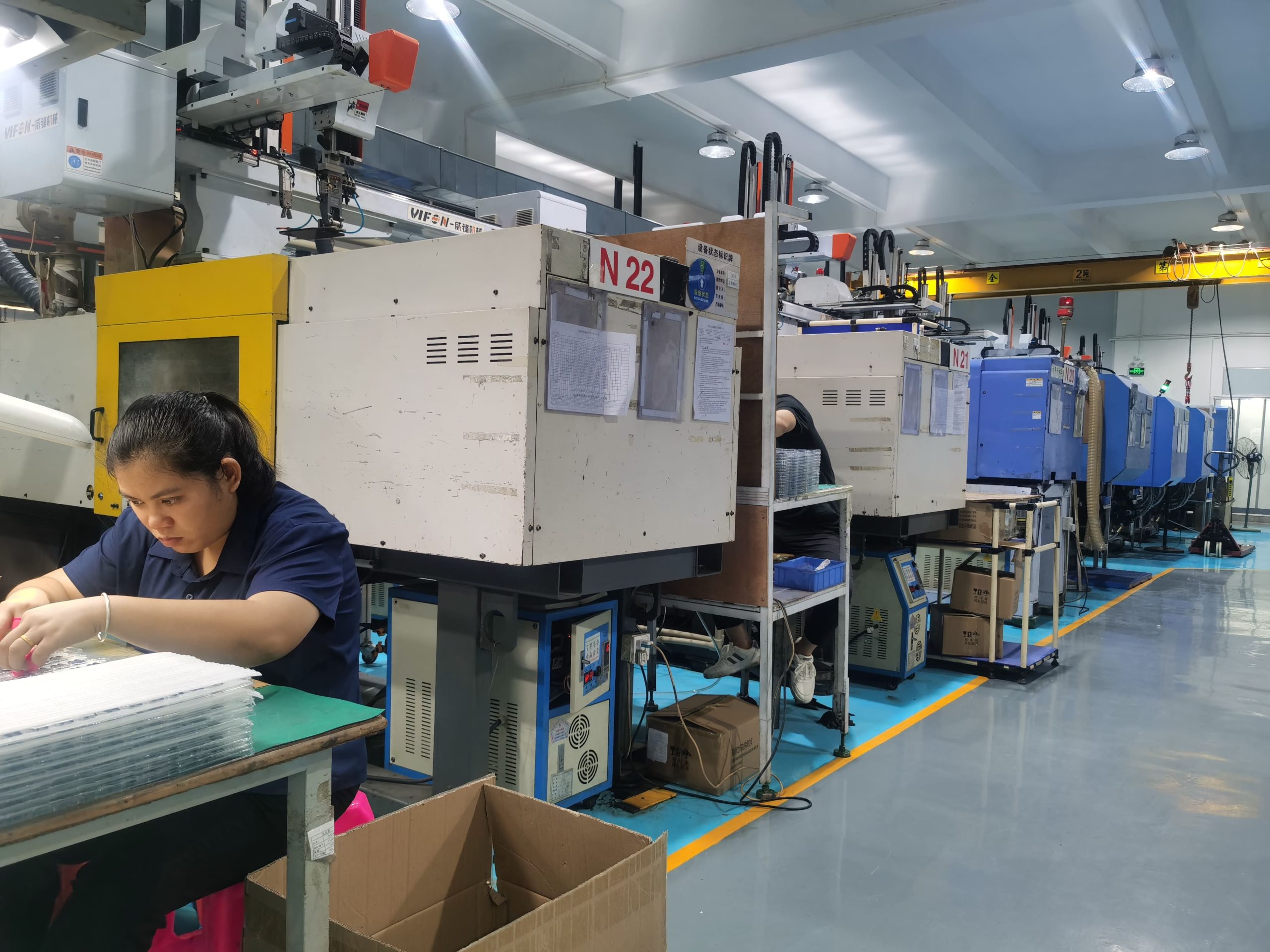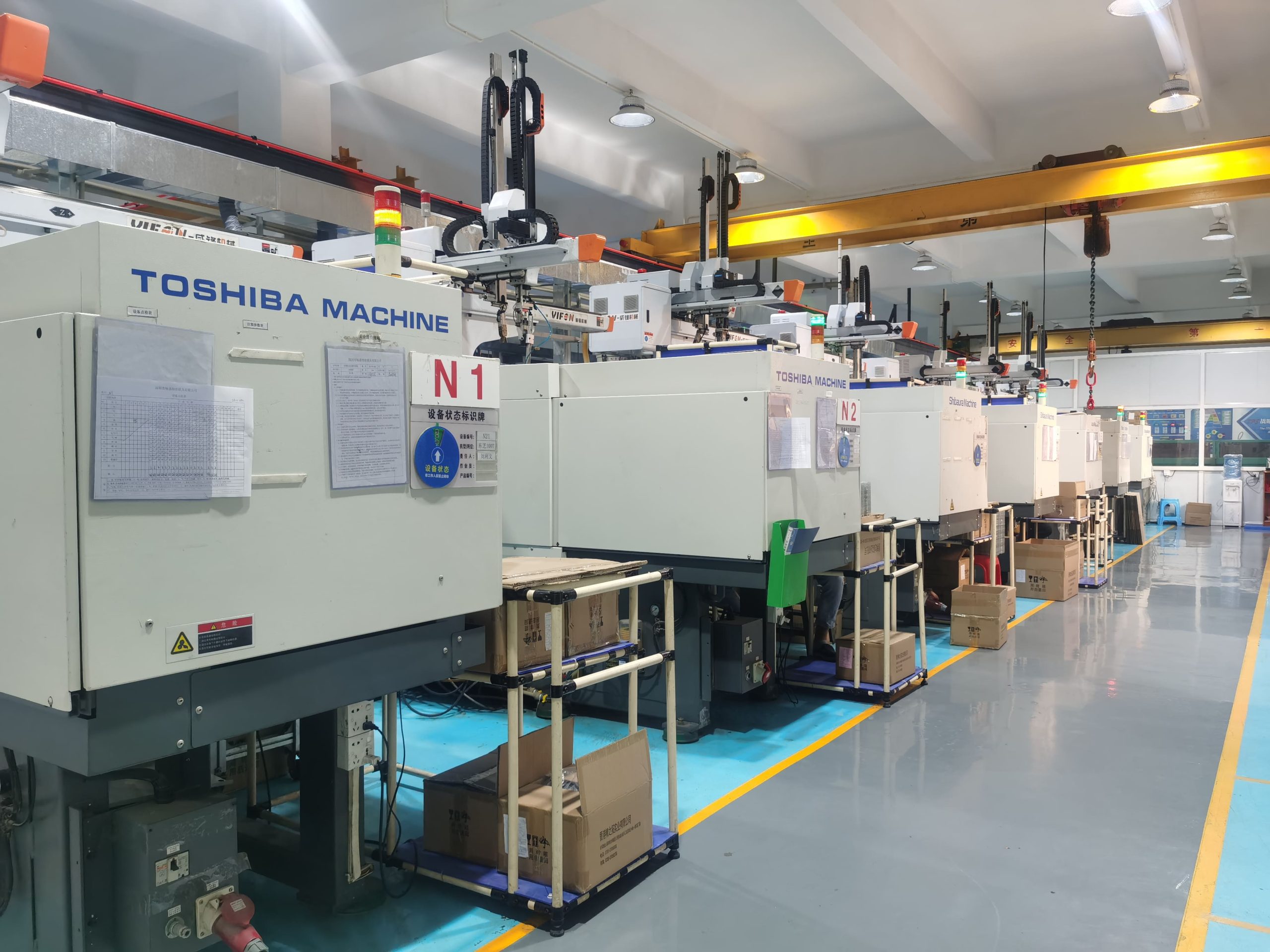 Every injection machine has unique identification and assigned process parameters. Visual work instructions and quality checkpoints displayed at each station ensure operator consistency.